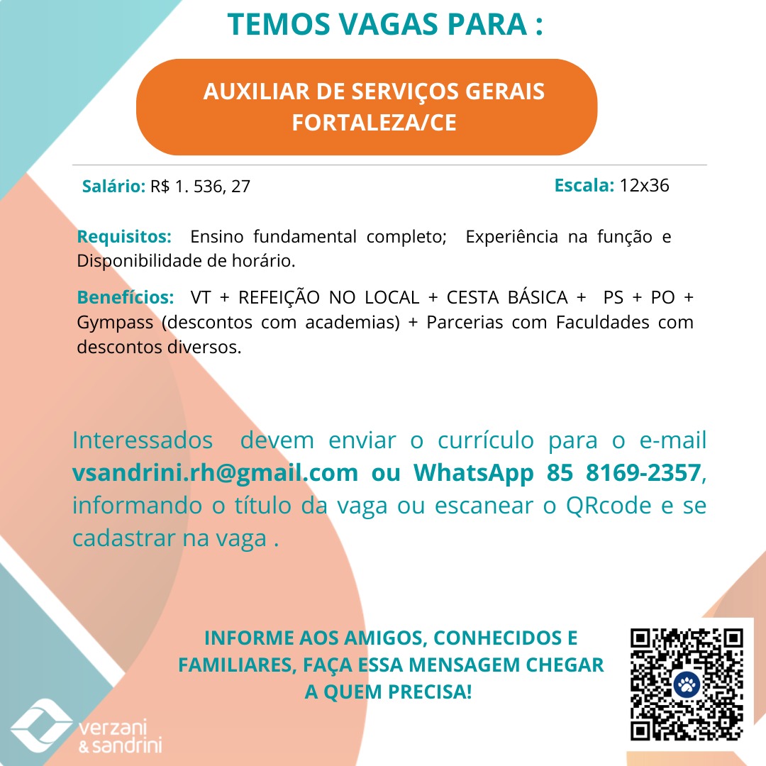 Local: Fortaleza, CE Horário: 44 horas semanais (segunda a sábado) Benefícios: Plano de saúde por aquisição, vale transporte, ajud...