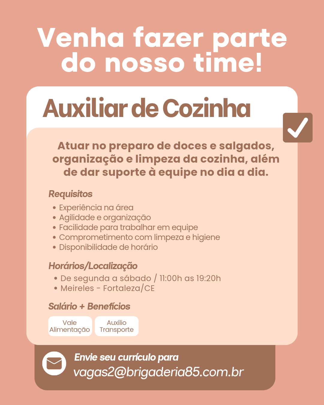 Local: Fortaleza, CE Estamos contratando Confeiteiro(a) para integrar nossa equipe em Fortaleza! Se você é apaixonado(a) por confeit...