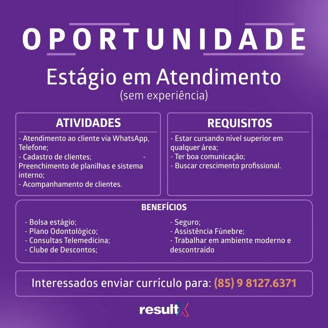 Estágio em Atendimento by Hélio de Souza in Estágio , ResultX Consultoria 0 comments Estágio,ResultX Consultoria • Compartilhe no Telegram • Compartilhe no Whatsapp Hélio de Souza