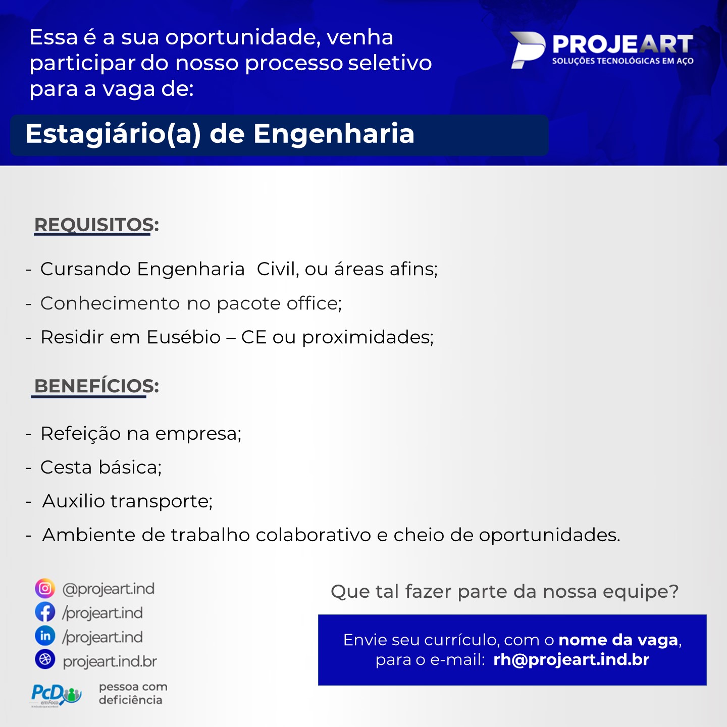 ESTÁGIO DE ENGENHARIA by Doit Vagas 2 in Eusébio , Projeart 0 comments Projeart,Eusébio, • Compartilhe no Telegram • Compartilhe no Whatsapp Doit Vagas 2